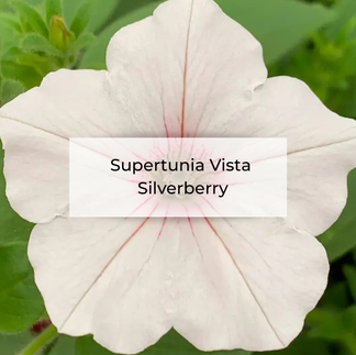 In addition to Bubblegum there are two other colors available with the same characteristics. Supertunia® Vista Fuchsia with fuchsia-pink flowers and Supertunia® Vista Silverberry with blushed white flowers with bright pink veins.